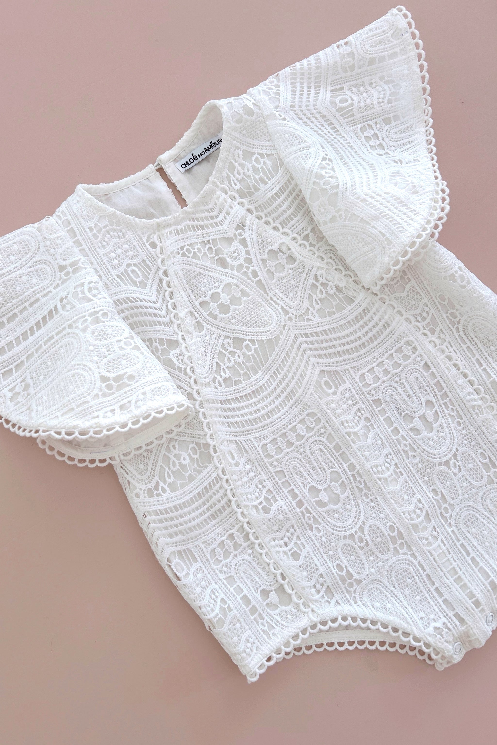 Flowers of Wonder Playsuit - Snow White Archways Lace